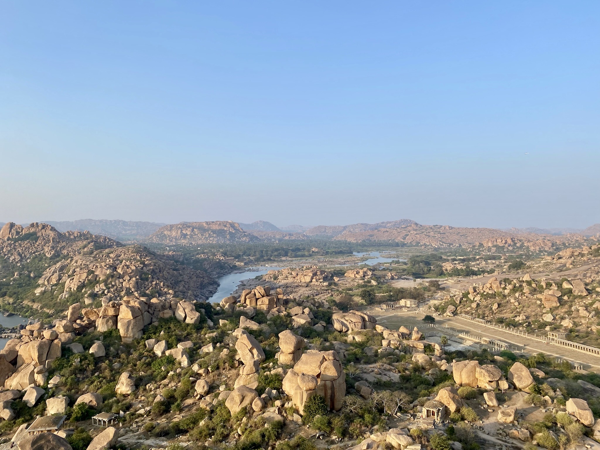 ハンピの町並みを見渡せるというマタンガヒルに登ってみました。