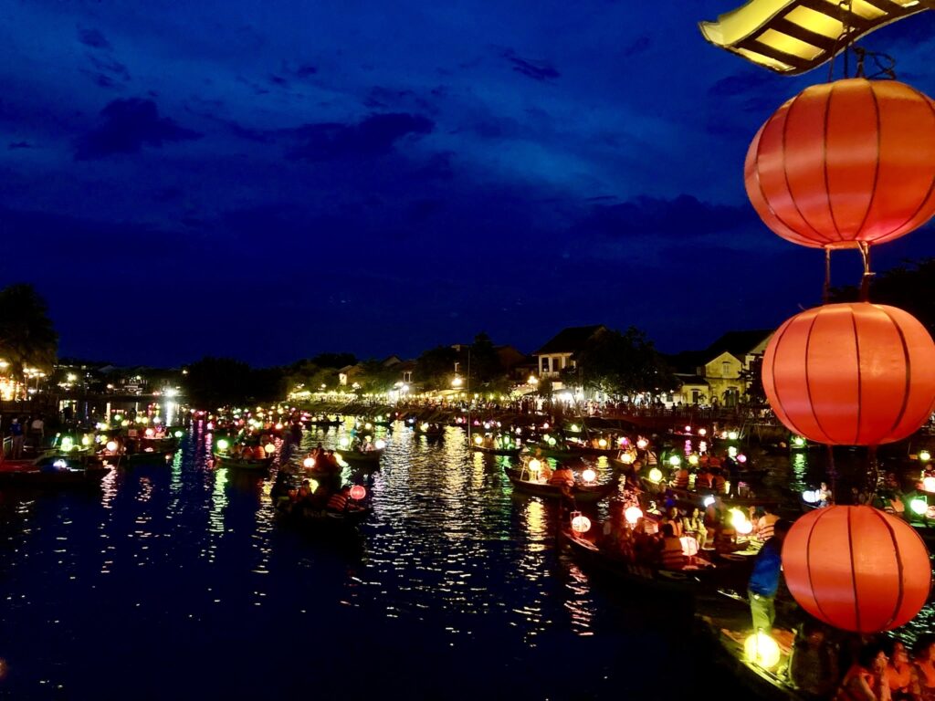 橋に吊るされた提灯には、馴染みのある文字で「ホイアン」と書かれています。