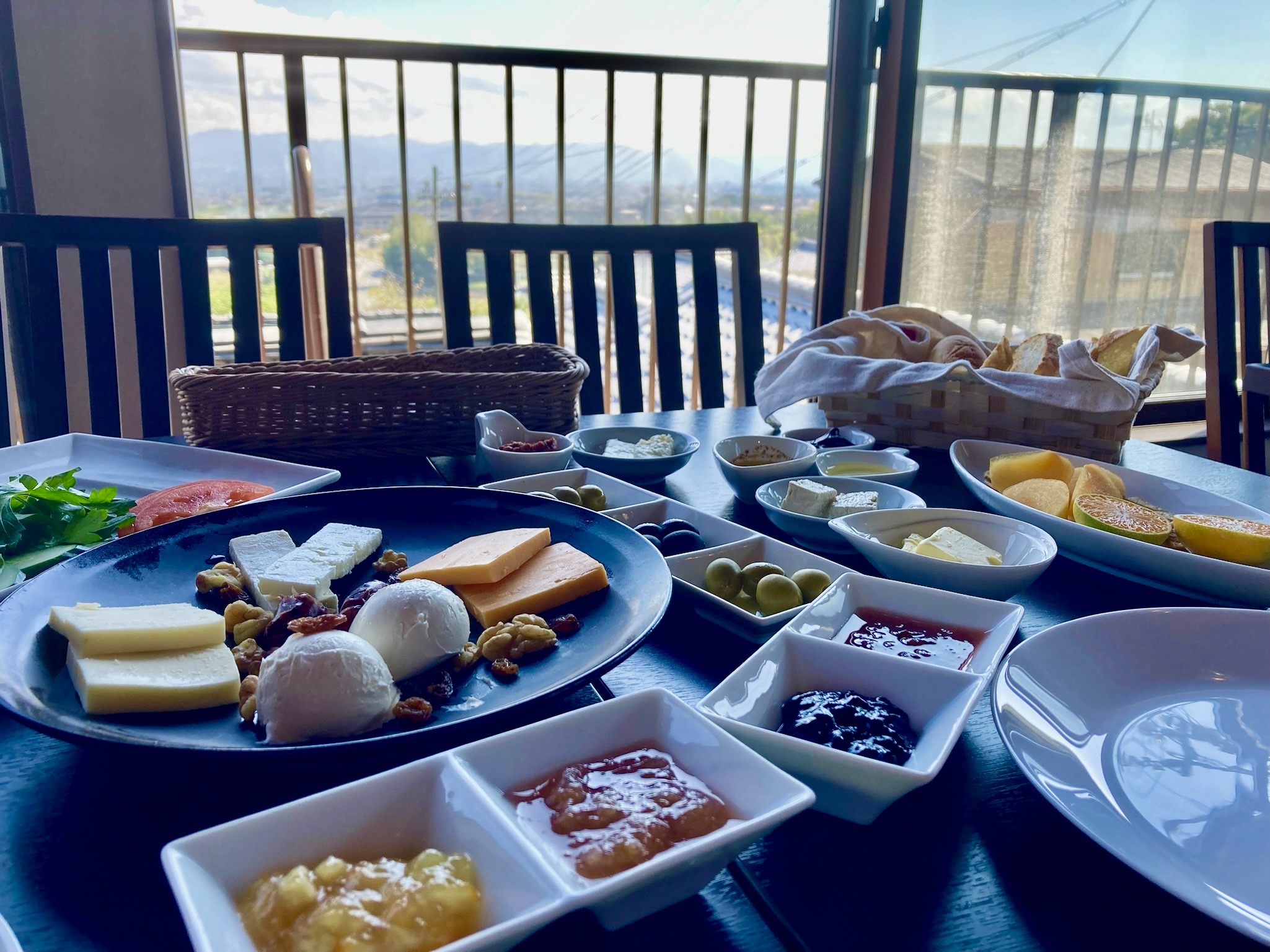トルコ滞在中、ホテルでは必ず朝食は付いていてどこもバイキング形式。パンやサラダ、チーズやオリーブ、様々なものが食べ放題。