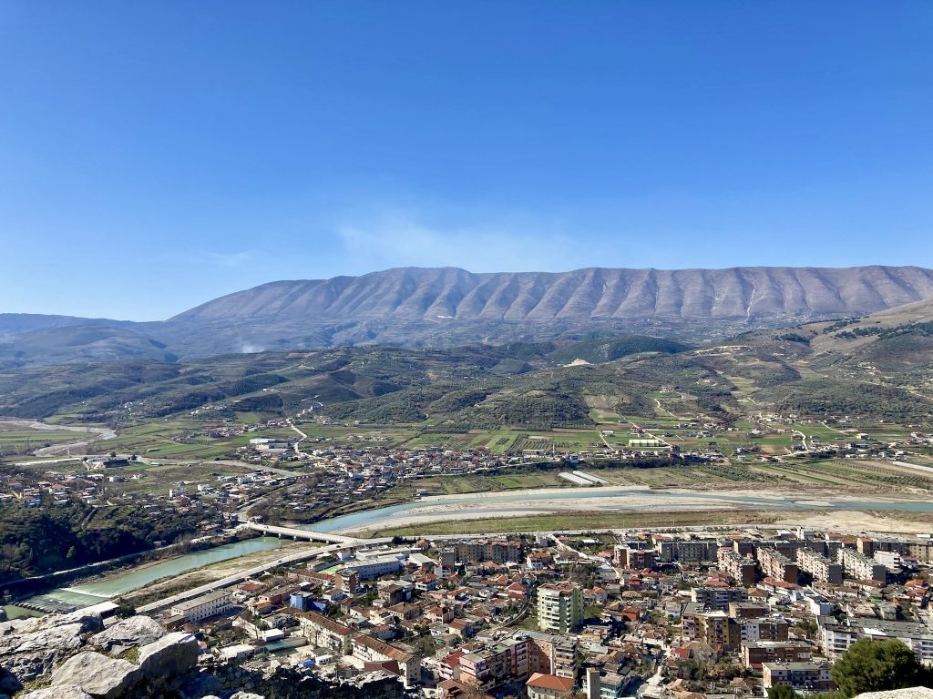 観光名所のベラト城には徒歩15分ほどで着くことができ、市内にも10分もかからないほどでアクセスは良いですが、こんな山道を登って行かないといけません。