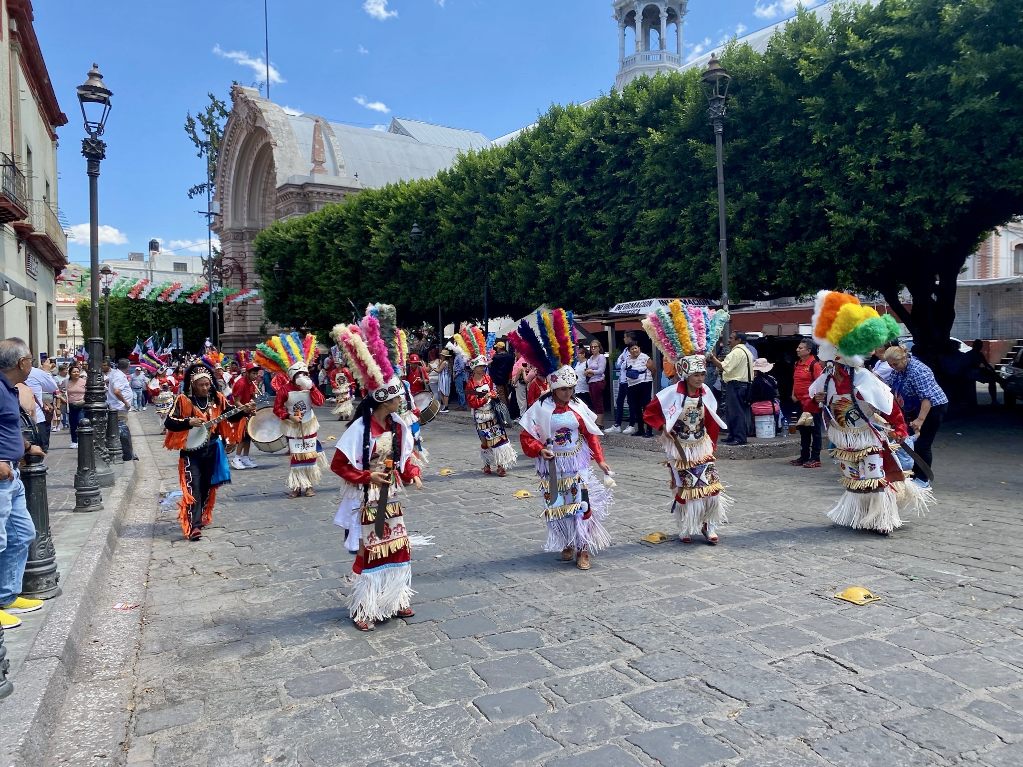 パレードというほど大きな規模ではなかったですが、カラフルな民族衣装を着飾った10代くらいの男の子と女の子が、暑い中一生懸命踊りながら行進していました。