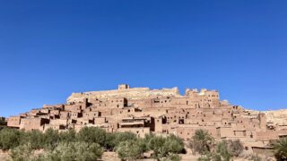本日は、ホテルの屋上からも見える集落へ向かいます。その前に腹ごしらえ。まずはホテルの朝食いただきます。コーヒーにモロッカンティーにオレンジジュース。飲み物が豊富。卵の奥にあるモロッコ風クレープが2人のお気に入りで、バターとハニーを塗ってクル...